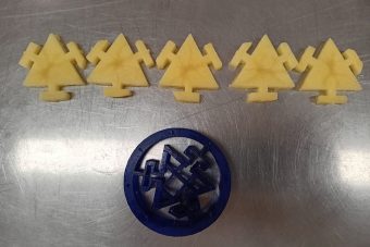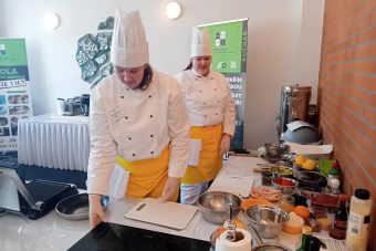 Děvčata si vylosovala startovní číslo 7. „V akci byly vždy jen dva týmy. Na jednu stranu měly naše holky výhodu, že než na ně přišla řada, mohly si vše okoukat. Ovšem na druhou stranu i znervóznět,“ naznačila učitelka odborného výcviku s tím, že vzhledem k našemu rázovitému regionu dívky vsadily na jednoduchost a pustily se do výroby Werkového Oceláře. K němu přichystaly dipy, salát z červené řepy s ořechy a  balkánským sýrem zalitý FerMatem. Místo hranolků vyřezávaly z plátků brambor znak TŽ. Jako vykrajovátko jim sloužil 3D model. Tím si práci ztížily, ale na druhou stranu i zabodovaly.