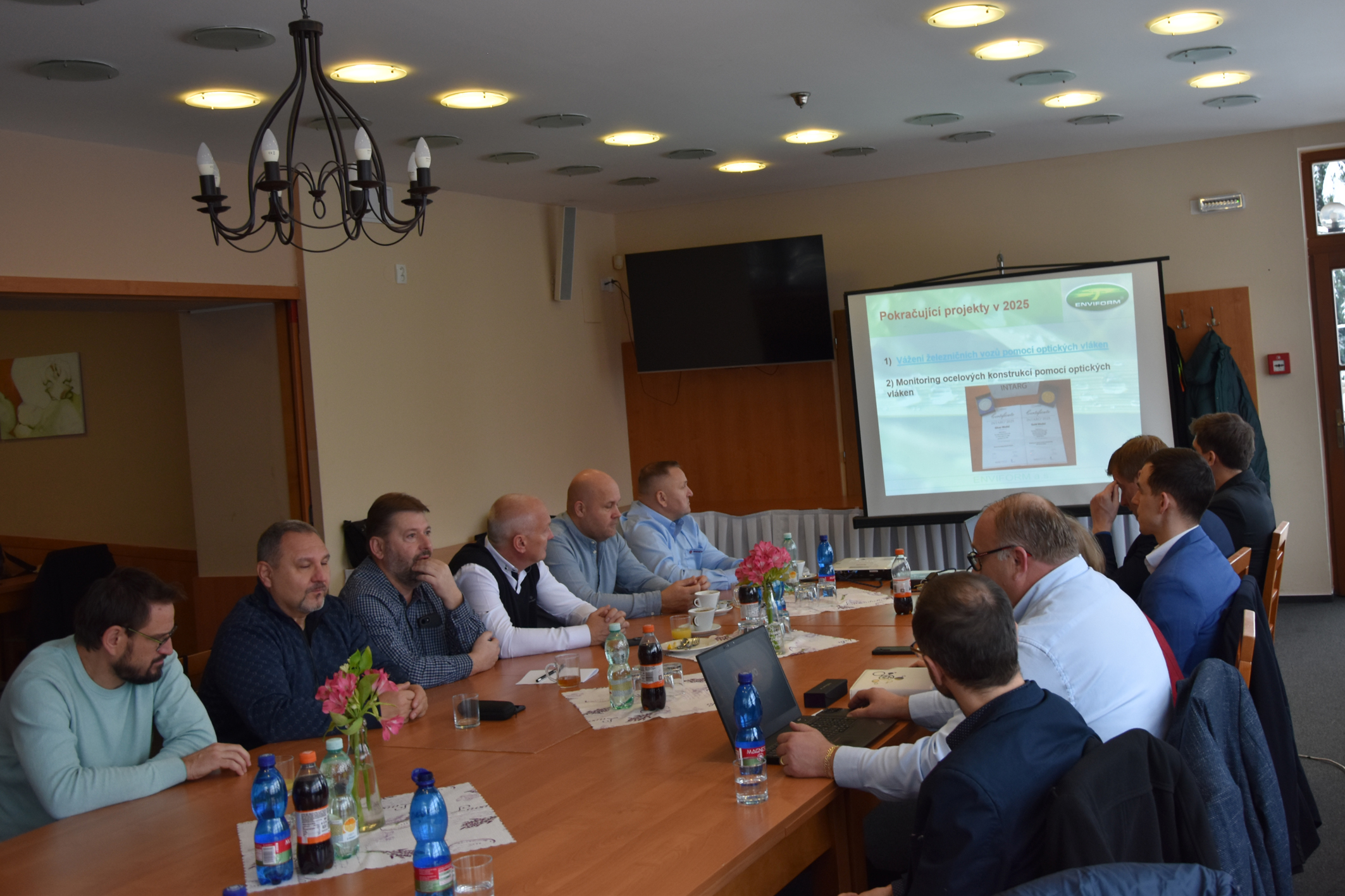 Václav Jakeš zároveň nastínil projekty, na nichž Enviform pracuje, či již zavedené zdokonaluje. Mezi pokračující patří například Vážení železničních vozů pomocí optických vláken a Monitoring ocelových konstrukcí pomocí optických vláken.