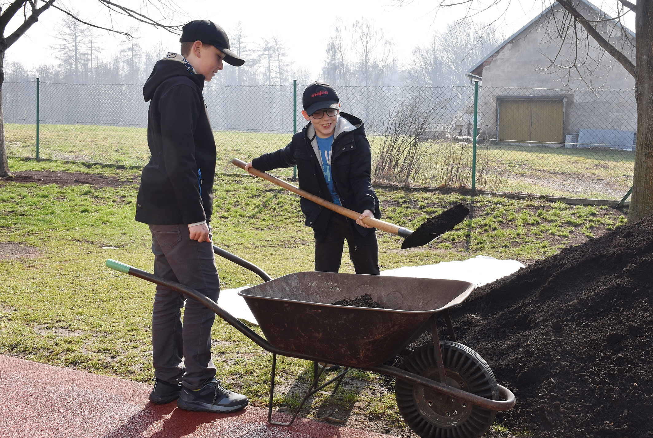 „Celé to naše snažení trvá asi měsíc. Nejdříve jsme dostali darem dřevěná prkýnka, která jsme smontovali a jsou z nich vyvýšené záhony. Když jsme si chtěli koupit hlínu, zjistili, jsme že je to dost drahá záležitost, a tak jsme zavolali do místní kompostárny Smolo, načež nám paní vedoucí Andrea Kufová hlínu přislíbila. Dnes nám přivezli hromadu kompostu, kterou náklaďák složil na školní zahradě,“ říká učitelka Alena Saparová.