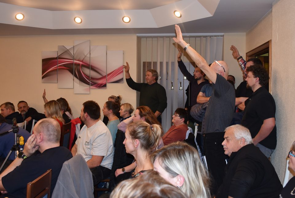 V pátek 19. prosince proto kromě zastupitelů a úředníků do obřadní síně v budově hasičské zbojnice přišli také nespokojení rodiče, bývalí zastupitelé i někdejší ředitel školy spolu s novináři. Všichni se nevešli, někteří stáli na chodbě, další před budovou.