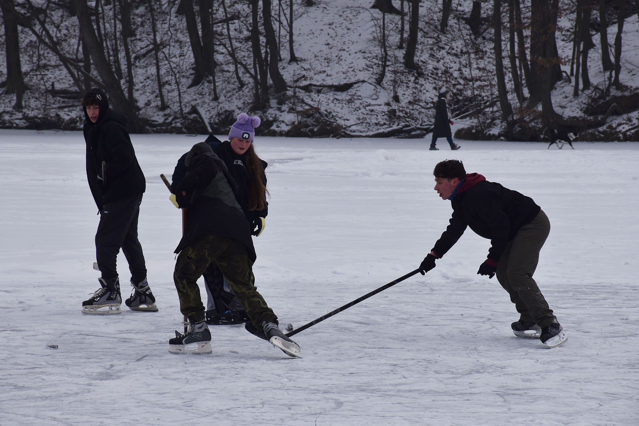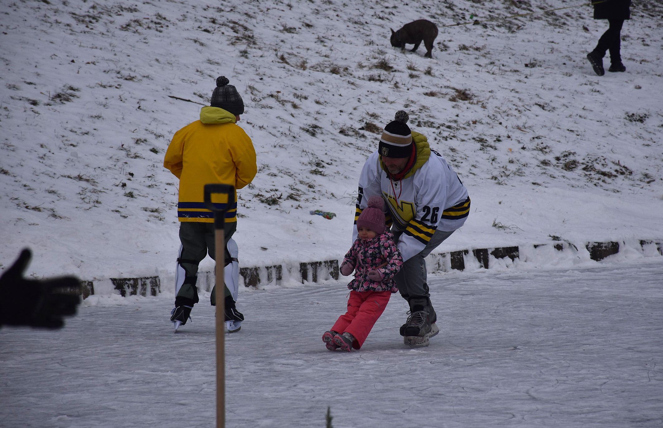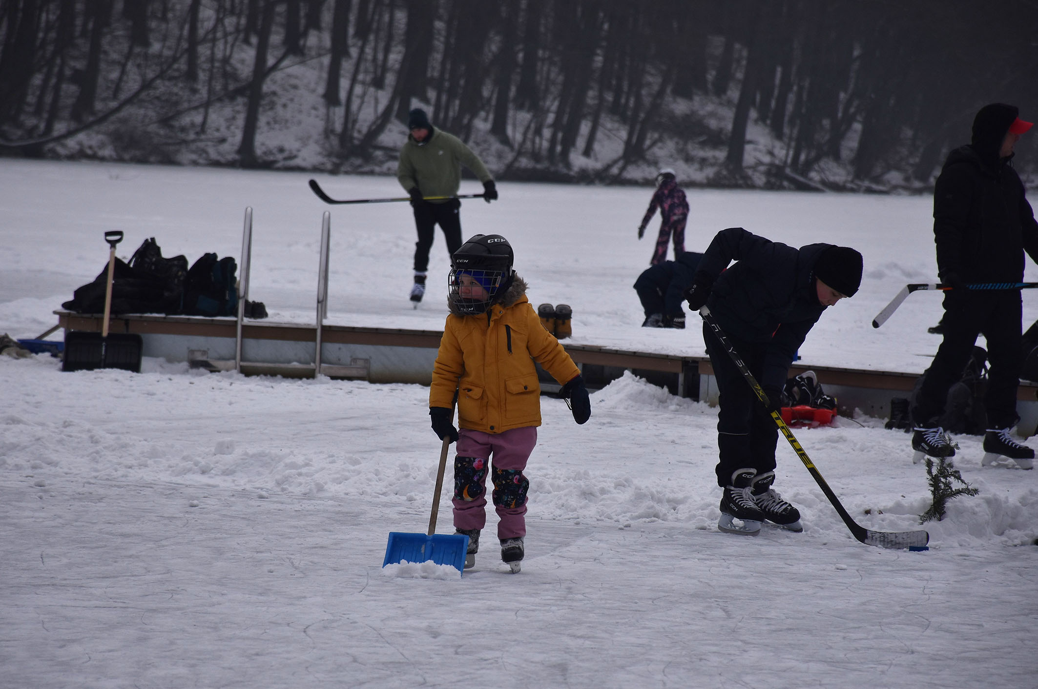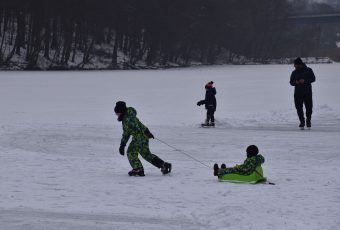 První krůčky na bruslích i hokejové mače. Tak to vypadalo na hrabinské přehradě